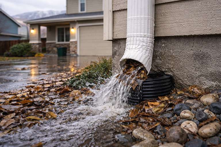 Even in a mild winter, Idaho gets freeze-thaw cycles. If an overnight freeze blocks the downspout or creates an icy dam, water backs up and spills over when temperatures rise.